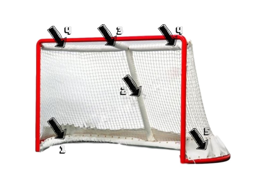 Zloženie: silná plachtovina potiahnutá PVC bielej farby, výplň na tlmenie nárazov. Po okrajoch je chránič pripevnený krúžkami a pletenou šnúrkou, ktorá slúži na pripevnenie chrániče na bránku.